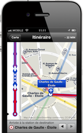 I created a suite of scripts and web interfaces to be able to enter the custom data were were using for the application, namely the metro stations and their entrances. We were also dropping or adding details depending on the zoom level. The goal was to have sufficient details depending on the zoom level, and have an overall limited size of the map tiles DB for download. Generating the map tiles required a lot of fine tuning to place the labels, and the details in the best way possible.