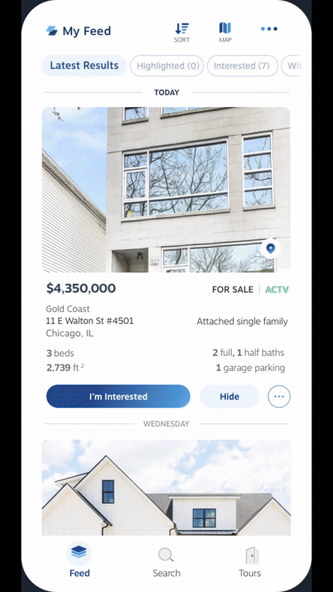 - Feed of listings that can be filtered and sorted, or viewed on map