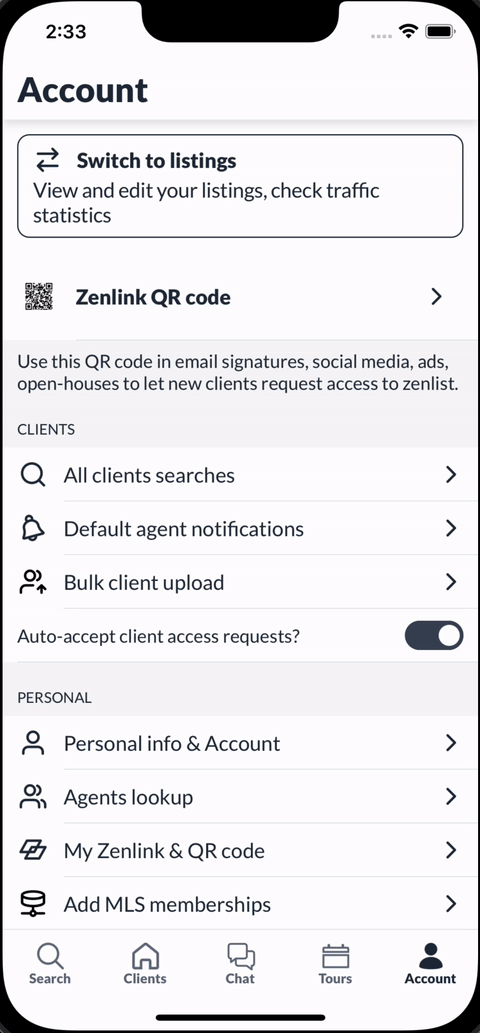 - Share QR code to the agent’s Zenlink, their customizable online profile